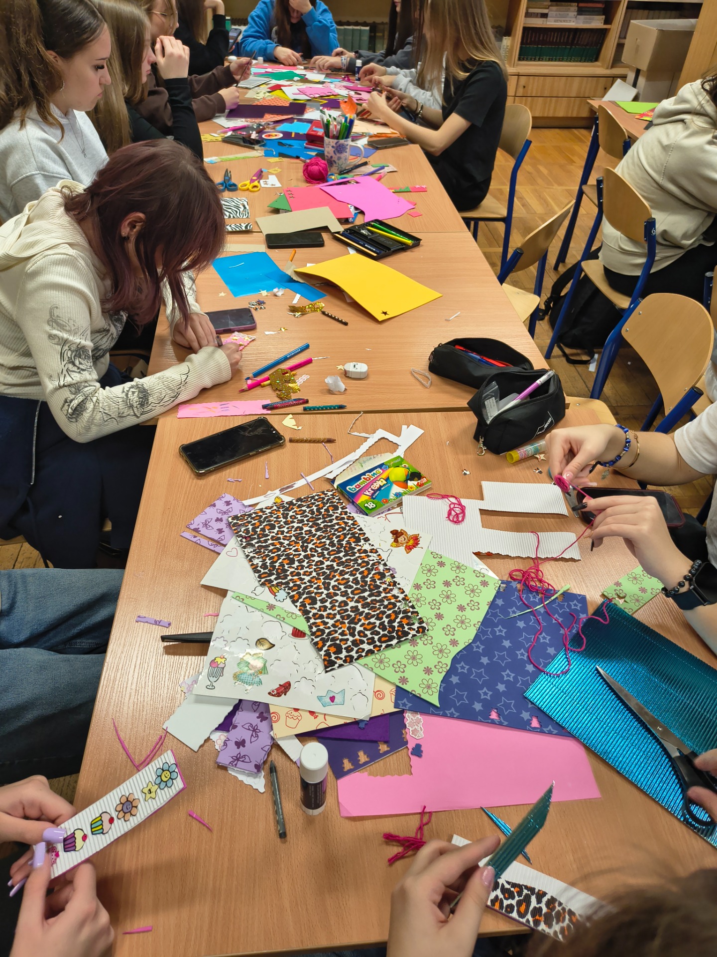 Tegoroczne warsztaty robienia zakładek do książek przeszły już do historii. Tym razem swoją wyobraźnią, talentem plastycznym i zdolnościami manualnymi, mogli wykazać się uczniowie liceum. Uczestnicy warsztatów wykonali unikatowe zakładki, wykorzystując kolorowe papiery, filce, naklejki, taśmy oraz inne ozdobniki.
